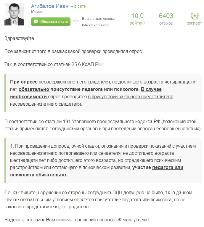 1.Как знать, как знать...Подкопаев Валерий: 04 дек 2019, 15:00 К малым такое законом не допустимо. С них и показания-то можно брать только в присутствии родителей (это для тех, кто в Т-34).