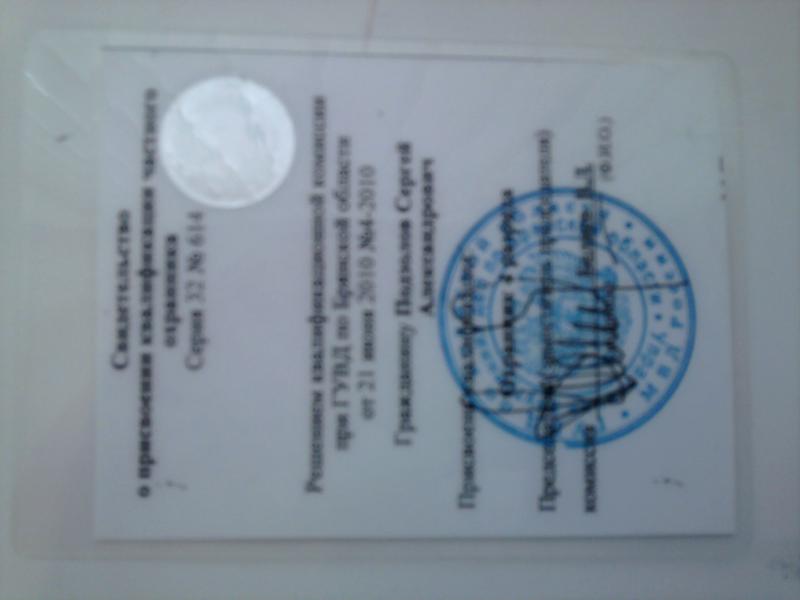 День добрый! Сергей Александрович, по вопросам подлинности удостоверения ознакомьтесь с материалом на сайте vse-oxrannikam . com Свидетельство о присвоении квалификации также контрафактное - не проявляется подлинной голограммы - (см на сайте), также ФИО не фигурирует на Всероссийской Ассоциации Образовательных Учреждений (сайт waou инфо)