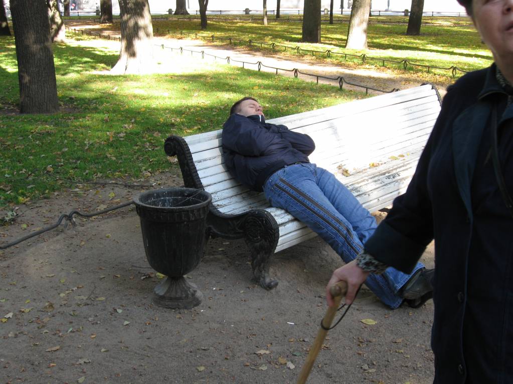 А нефиг людей без спроса фотать ))), сидит человек на скамейке, никого не трогает, никому не мешает.Был в Спб когда, хотел парня пьяного на скамейке сфотать, меня мимо проходившая старушка чуть тростью не забила: "Он вам разрешения на съёмку не давал!"![]()