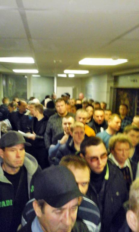 Назначено быть к 8:30 с копией приглашения на прохождение проверки и паспортом. Я подошёл к положенному времени и был 4тый в очереди. Принимать стали в 10:30. К этому времени в помещении не предназначенному к большому количеству народу (узкий коридор, один выход, полуподвальное помещение) собралось человек 300. Духота, состояние как селёдка в бочке.