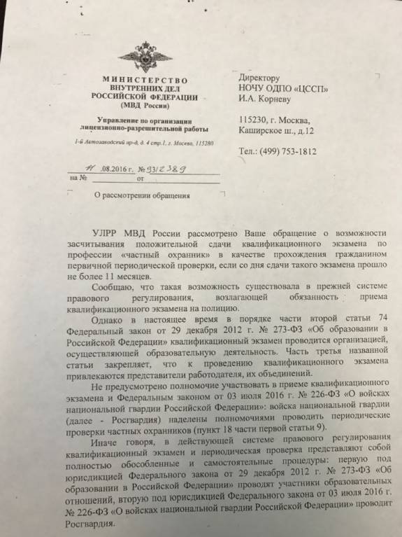 Re: Разъяснения Росгвардии о первичной проверке частных охранников.