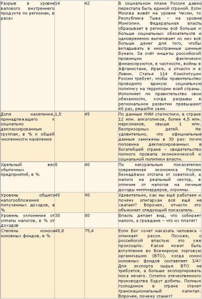 Разрыв в уровне валового внутреннего продукта по регионам. Официально: 14 раз. Фактически: 42 раза. В социальном плане Россия давно перестала быть единой страной, пишет Смолин. Если Москва живет на уровне Чехии, то Республика Тыва – на уровне Монголии. Федеральная власть сбрасывает в регионы все больше и больше социальных обязательств и одновременно вытягивает из них все больше денег для того, чтобы вкладывать в иностранные ценные бумаги. За счет нищеты российской провинции фактически финансируются, в частности, войны в Афганистане, Ираке, а отчасти - и в Ливии. Статья 114 Конституции России требует, чтобы правительство проводило единую социальную политику на территории всей страны. Исполняет ли правительство свои обязанности, когда разрывы в региональном развитии превышают в десятки раз, решайте сами, обращается к читателям Смолин.